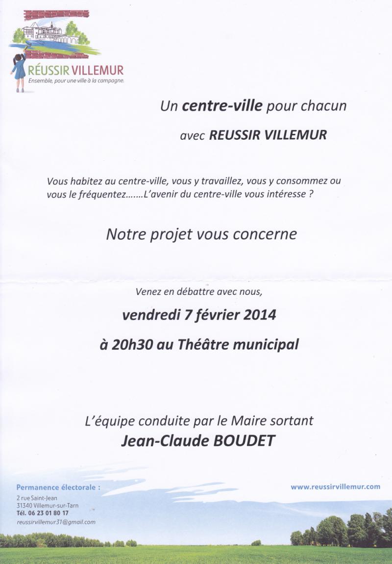 Invitation à la Réunion du Centre Ville vendredi 7 février 2014 à 20h30 au théâtre municipal de Villemur sur Tarn